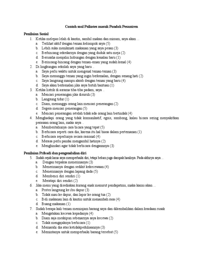 / Contoh Soal Psikotes Masuk Pondok Pesantren / Contoh Soal Psikotes Masuk Pondok Pesantren : Psikotes umumnya dipakai dalam dunia kerja, sekolah, hingga pengecekan psikologi seseorang dalam ranah hukum.