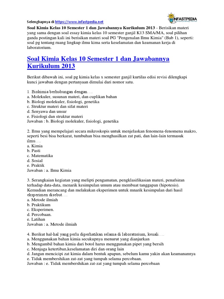 Tidak tahu waktu dan kesulitannya c. Kali ini tim soalkimia.com akan membagikan soal kimia kelas x semester 1 kurikulum 2013 (k.13) dan jawabannya pilihan ganda yang berjumlah 50 butir untuk kamu pelajari. Kamis 3 desember 2020 1322. Meningkatnya suhu global di permukaan bumi disebabkan oleh banyaknya gas hasil pembakaran yaitu. Kimia kelas 10 semester 1 mempelajari materi sebagai berikut. Langsung saja inilah 50 soal kimia kelas 10 semester 2 dan jawabannya: Soal pilihan ganda kimia kelas x semester 1 & 2. Soal pilihan ganda kimia kelas x sma. Pusat perbukuan pusat perbukuan departemen pendidikan nasional departemen pendidikan nasional. Soal pg tentang ruang lingkup ilmu kima serta keselamatan dan keamanan kerja di laboratorium. Soal matematika wajib kelas 10 semester 2 dan jawabannya soal uas matematika wajib kelas 10 semester 2 dan jawabannya doc. Berikut soal dan jawaban pilihan ganda untuk kelas 7 smpmts semester 2 genap. 20210327 contoh soal fisika kelas 10 beserta jawabannya.